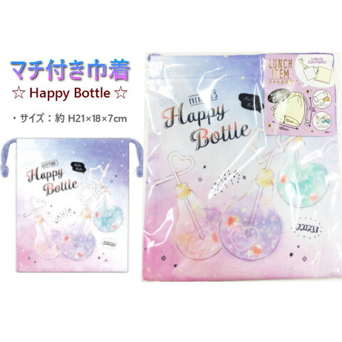 マチ付き巾着 ☆Happy Bottle☆ サイズ 約H210xW180xD70mm