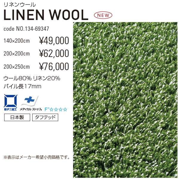 ウール 80% リネン 20% パイル長 17mm 防ダニ加工、メディカルストップ、F☆