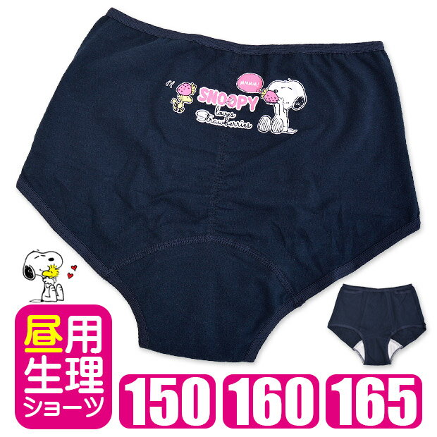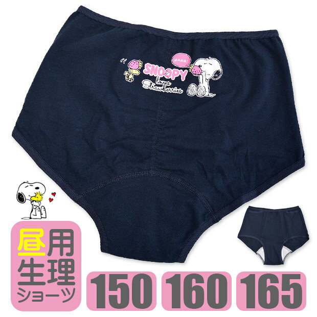 お買い物マラソン【2点以上同時購入でメール便送料無料】 生理用ショーツ サニタリーショーツ 生理ショーツ 夜用 ナイト用 レギュラー スヌーピー 綿 コットン 生理 サニタリー ショーツ パンツ 下着 子供 女の子 ジュニア 150 160 165